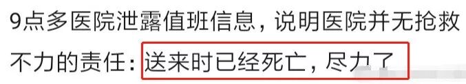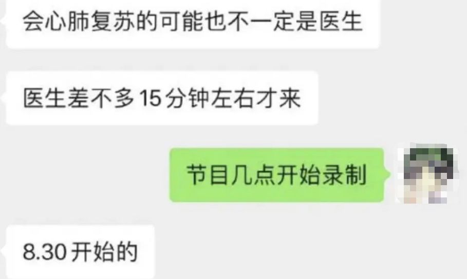 9. 爆料说,当时的确有医护人员迅速赶到,做了十几分钟心肺复苏,但没有更加专业的急救仪器。