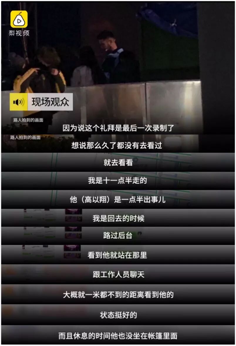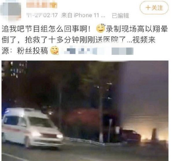 凌晨,网上突然有消息说,录制现场高以翔晕倒,抢救了十多分钟刚刚送去了医院。