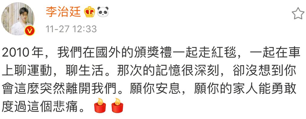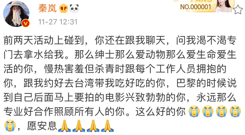 无数艺人和朋友发文悼念。