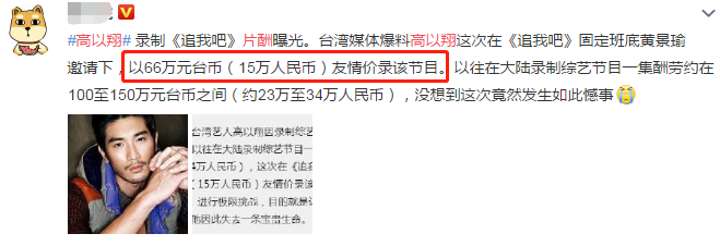 有人爆料,高以翔参加这个节目,是受到黄景瑜的邀请,以15万人民币的友情价,参加录制的。