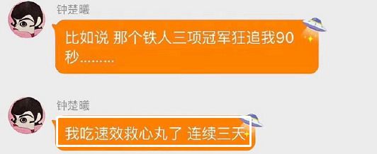 一个铁人三项的冠军狂追着她跑90秒,回去后吃了三天速效救心丸,才缓过来。