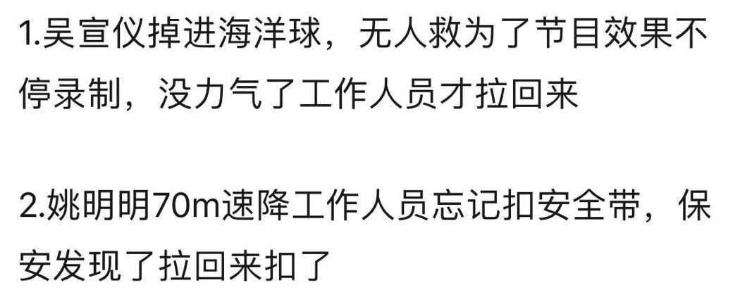 这节目开播前的介绍是,具有强大的安保阵容,提前测试危险系数、配备专业的医疗团队,让所有人可以安全的录制。