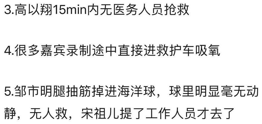 11. 节目组被质疑抢救不到位,延误治疗时间。