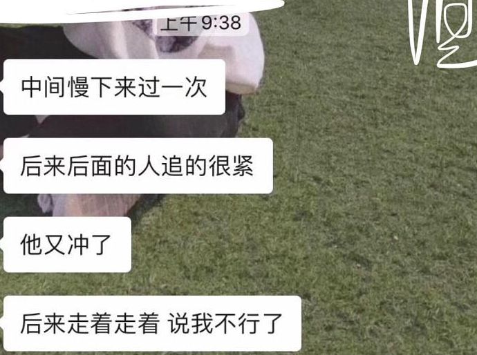 5. 但后来,后面的人追的紧,他又开始往前冲,跑了半分钟后,突然喊了一句,我不行了。
