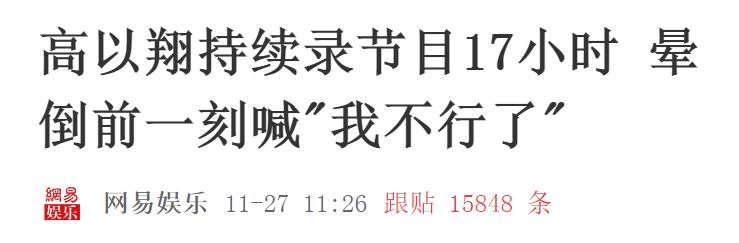 1. 当天节目录制早上8点半开始,预计第二天凌晨4点结束,高以翔在倒地前已经连续17小时高强度工作。