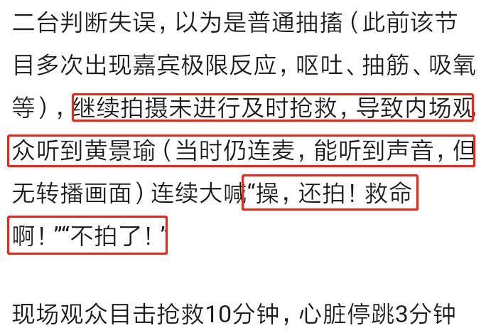 这似乎与黄景瑜在现场呼喊医生呢,互相佐证。