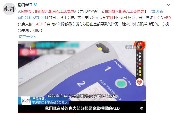 录制现场疑似未配置AED(自动体外除颤器)成为隐患。