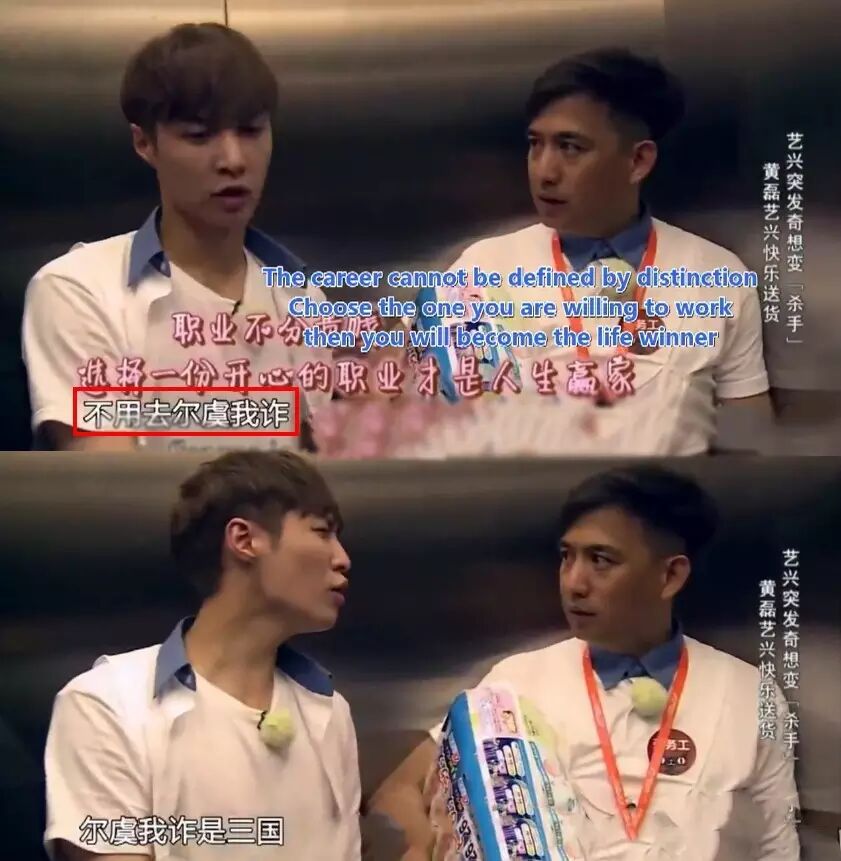 ▲黄磊感叹蓝领的工作“不会尔虞我诈”,他立马无缝唱到《三国》去