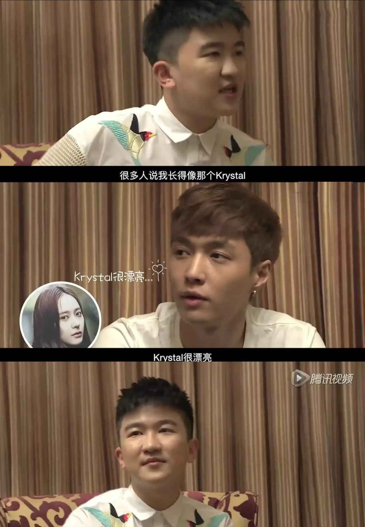 对主持人自称像韩国女星Krystal,他已经会带一点调侃意味去回应