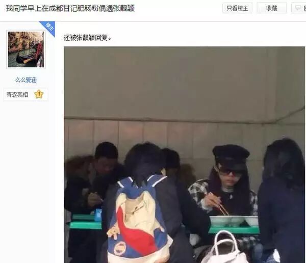 已经是国际范儿的靓颖了,来蓉都要去苍蝇馆子吃碗粉儿,看来吃了肥肠粉儿才能吼出海豚音啊。