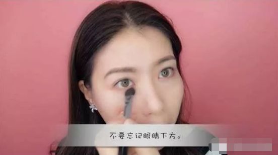接下来就到了整个妆容的灵魂部分了——眼妆,眼妆部分使用到的是单色眼影,首先进行眼部打底,眼睛下方也要打底。
