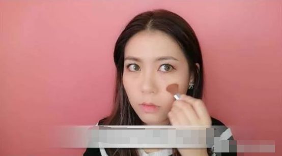 将修容棒阴影部分涂在两腮、发际线和鼻翼两侧,高光部分涂在下眼睑、额头、鼻梁、太阳穴和下巴处,然后用美妆蛋均匀拍开。