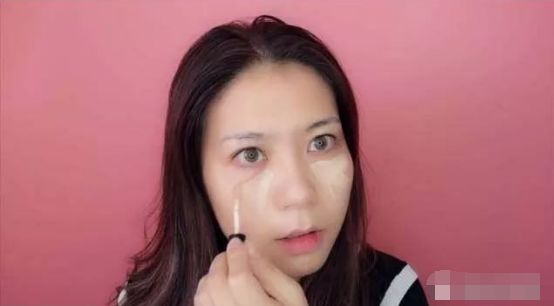 首先用遮瑕液在面部进行遮瑕,只需要将遮瑕涂在黑眼圈、痘印等需要遮盖调色的地方就好。