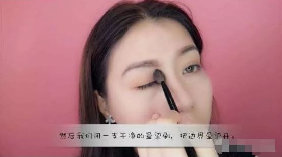 然后用眼影打底,注意从眼角向内晕染,用一支干净的晕染刷,把边界晕染开,形成一个柔和的过渡。