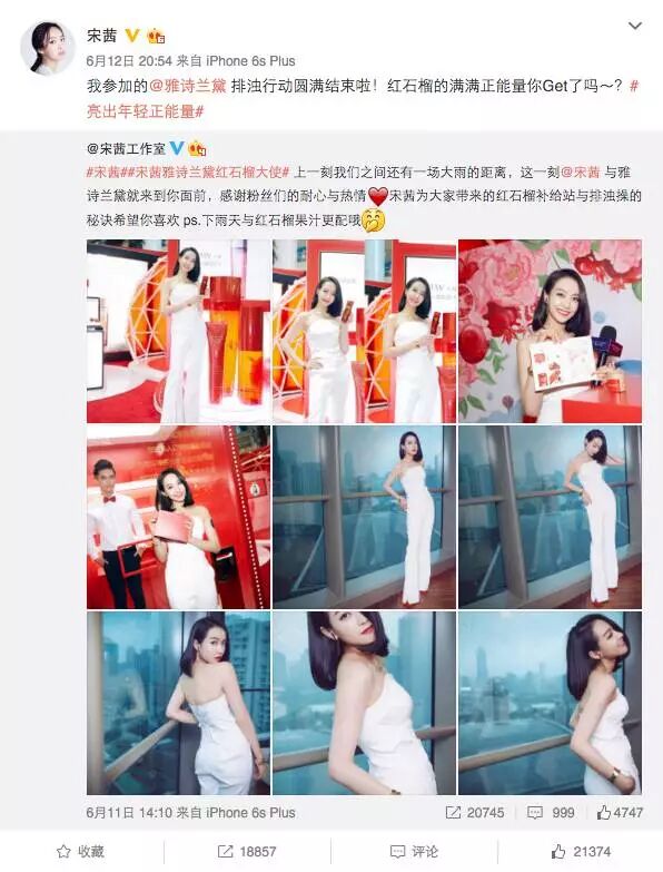 【微博】宋茜更新一条微博,快来看哇 宋vic茜追踪小分队 内地女星 2016-06-13 19:26:23 184 创作不易,用心坚持,欢迎请BaGua喝几杯爱心咖啡!打赏并支持本文 打赏并删除本文 昨晚20:54 ,宋茜转发微博一条,并附言:我参加的@雅诗兰黛 排浊行动圆满结束啦!红石榴的满满正能量你Get了吗~?#亮出年轻正能量#截图如下:相关图片:点击“阅读原文”,直达宋茜的微博 创作不易,用心坚持,欢迎请BaGua喝几杯爱心咖啡!打赏并支持本文 打赏并删除本文 感谢您的支持鼓励,我会继续努力的!文章地址:用户邮箱:打赏金额:USDT 请输入数字点击”去打赏“,即可进行打赏支持本文章哦 宋茜 About the Author 宋vic茜追踪小分队 功能介绍:风雨无阻,一路朝宋,幸与君同。宋茜追踪小分队,实时更新宋茜动态、新闻、图片、时装及原创独家分析文章。(粉丝运营,非宋茜本人=3=) Related Posts 【幻城】宋茜为幻城录歌,官方照片及手机壁纸 2016-06-13 19:26:24 【微博】宋茜更新一条微博,快来看哇 2016-06-13 19:26:23 【白日仙女】宋茜*雅诗兰黛画报又双叒叕公布一组新图! 2016-06-04 20:17:16 【永远女神】宋茜Vogue Me 美容大片更新图片1张(有彩... 2016-06-04 20:17:15 发表评论