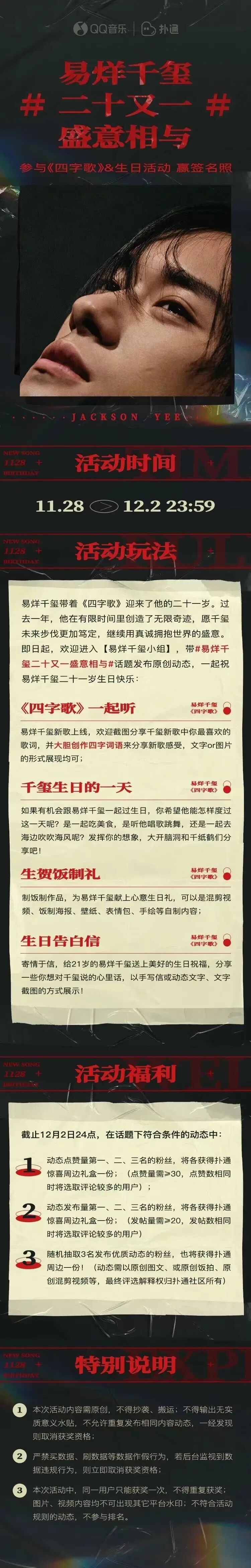 而在19岁生日当天,易烊千玺交出了单曲《冷静与热情之间》,后将其收录在2019年12月发行的专辑《温差感》中。“每个午夜睡去,温差感让我安心,每个梦醒时分,一切成真”,透过这首充满生活气息的歌曲,也让大家看到了易烊千玺更为成熟的一面。值得一提的是,歌曲由橘子海乐队操刀制作,这也让粉丝朋友们在评论区中直呼,“上次是和郭顶合作,这次和橘子海合作,四字弟弟可太会了!”