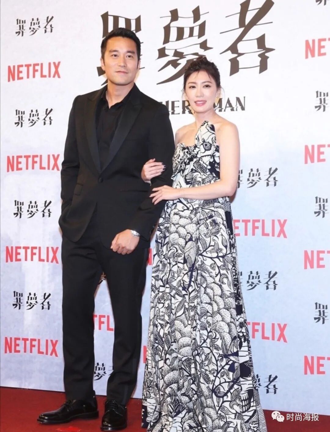 抹胸长裙相较于深V的样式而言,更显优雅氛围,如果锁骨比较明显的话,能够达到显瘦的效果。贾静雯身上的这款抹胸裙,采用的是黑白两色,上面用简单的色彩描摹出了大面积的花朵图案,视觉上看起来典雅,又带着一丝端庄的风格。