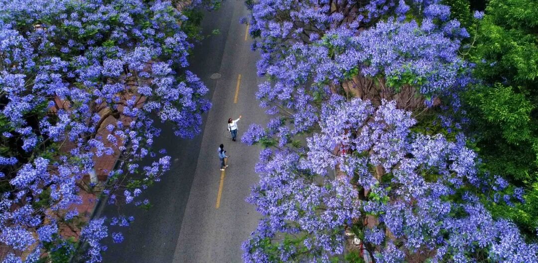 行程:教场中路蓝花楹大道→翠湖公园(蓝花楹+历史建筑)→篆新农贸市场(赶花市、吃花食)→南屏街→南强街夜市