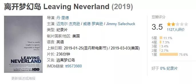 从中国观众的评分也能看出来,这部纪录片在MJ逝世10周年的节点上冒出来,赤裸裸地颠倒黑白、蹭热度,其恶心人的程度足以引起公愤。
