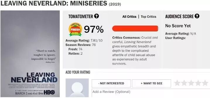 早在今年一月初,就传闻有一部关于MJ娈童的纪录片,会在圣丹斯电影节首映。消息一出便引起轩然大波,遭到MJ粉丝的强烈谴责和抵制。