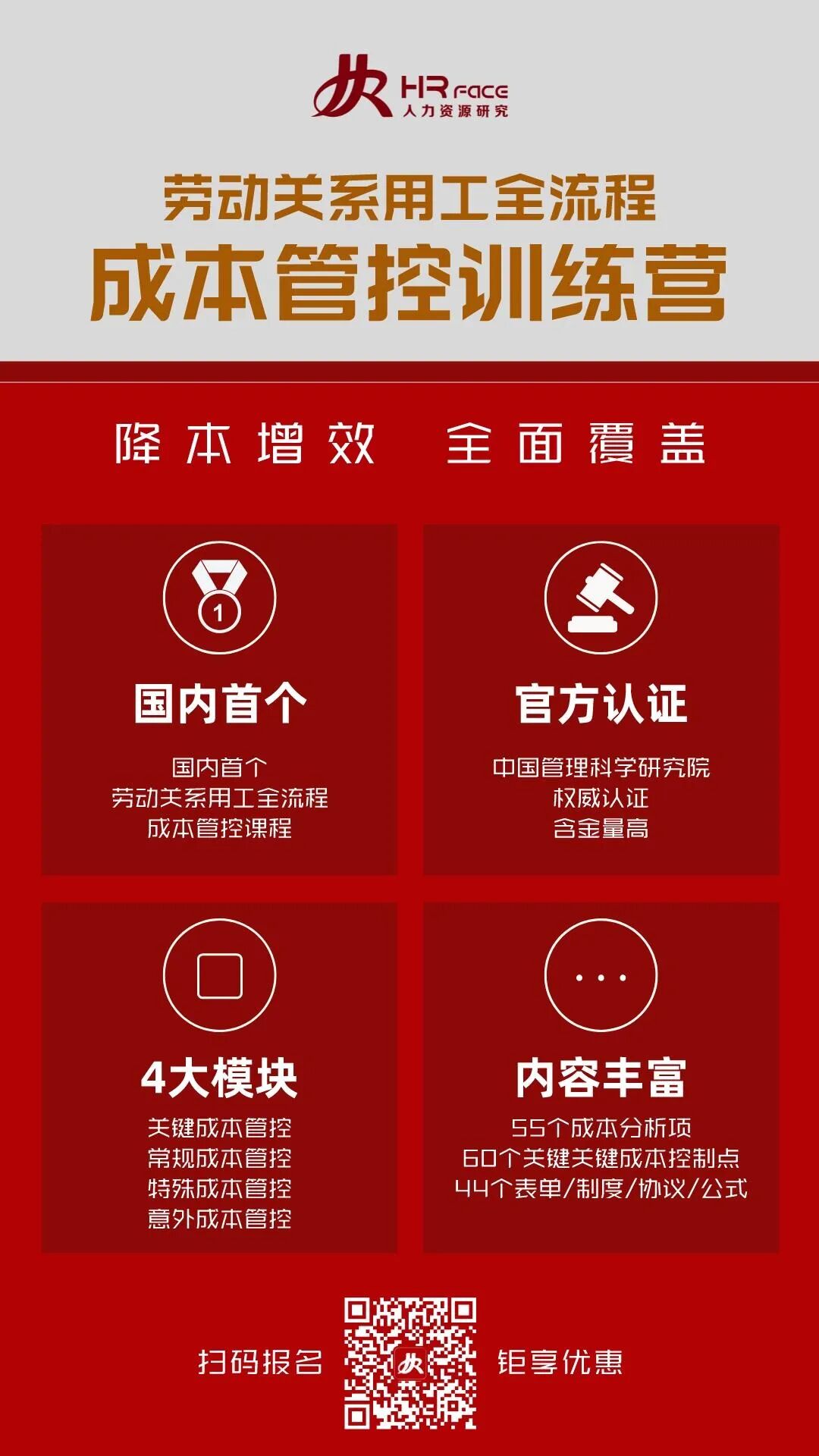 掌握各个模块用工成本的计算方法; 掌握合规降低用工成本的方法; 选择适合企业的用工形式,做好成本筹划,避免负担过重; 掌握一套正规、完善、可行的用人管理工具,规范用人制度,直接有效的减少用工成本浪费; 通过一系列的数据分析模型,更精准的做好劳动关系风险管控。