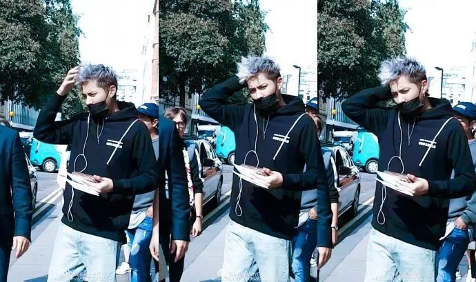 着白色短T、扎着辫子的吴亦凡