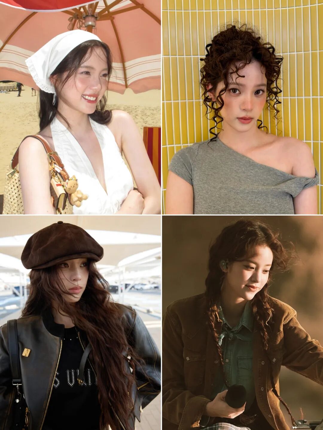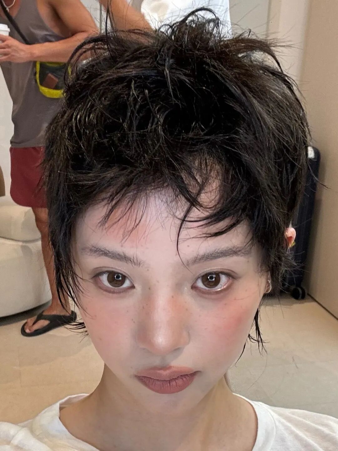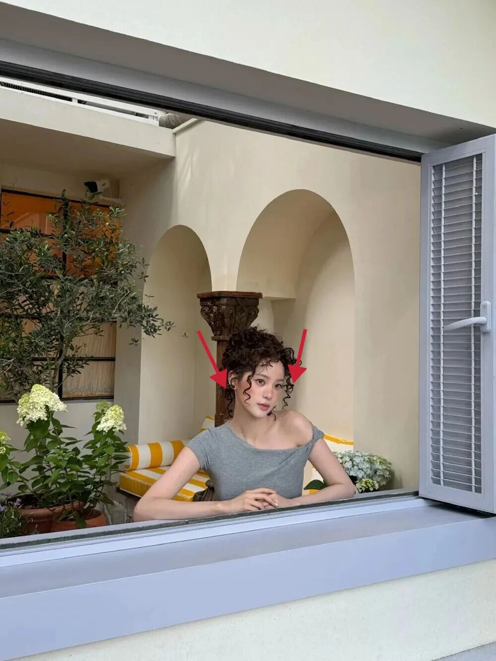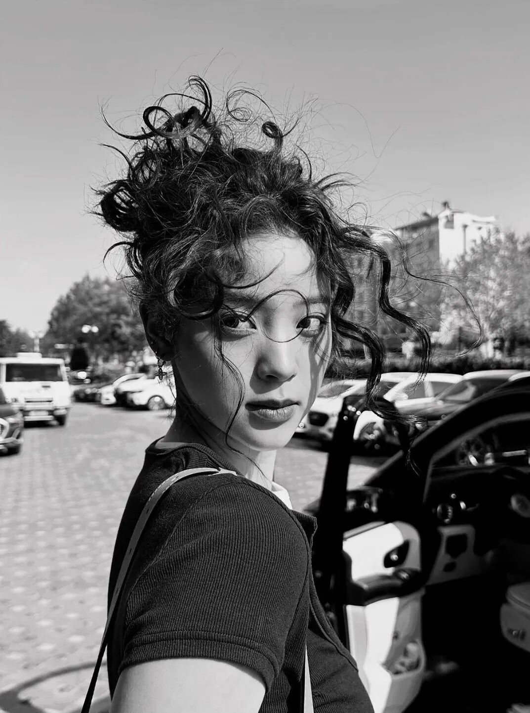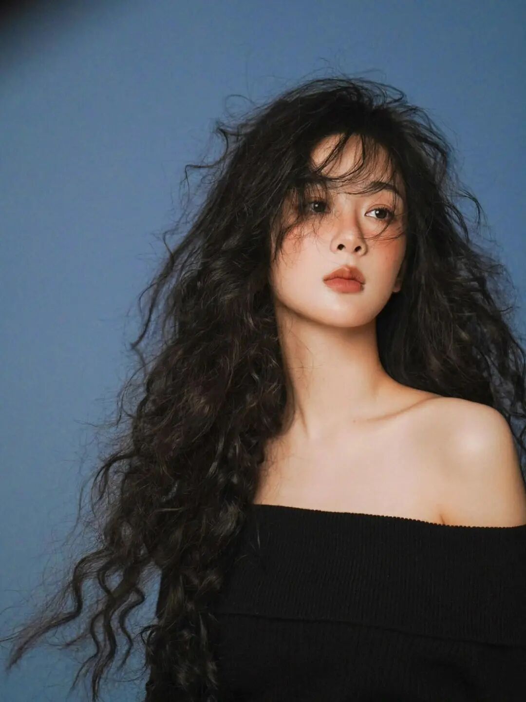 比起直发造型,羊毛卷的造型自带蓬松度和复古感,拍照特别上镜、容易出片。蓬松的卷度还能实现“头包脸”的效果,特别显脸小。▼