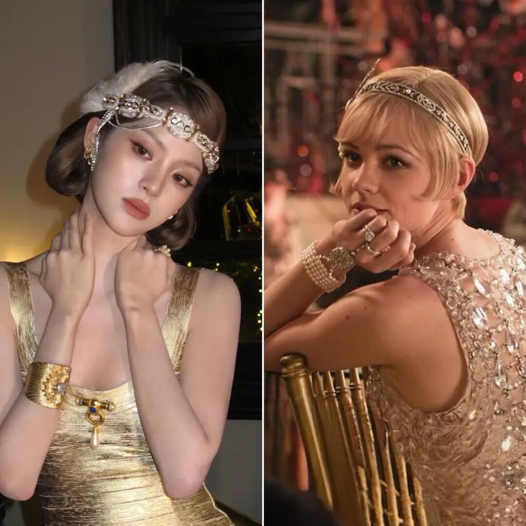 而她的盖茨比造型,其实并没有完全复刻1920年代爵士时代的奢华与浮夸,而是巧妙提炼了其中最代表性的几大元素——