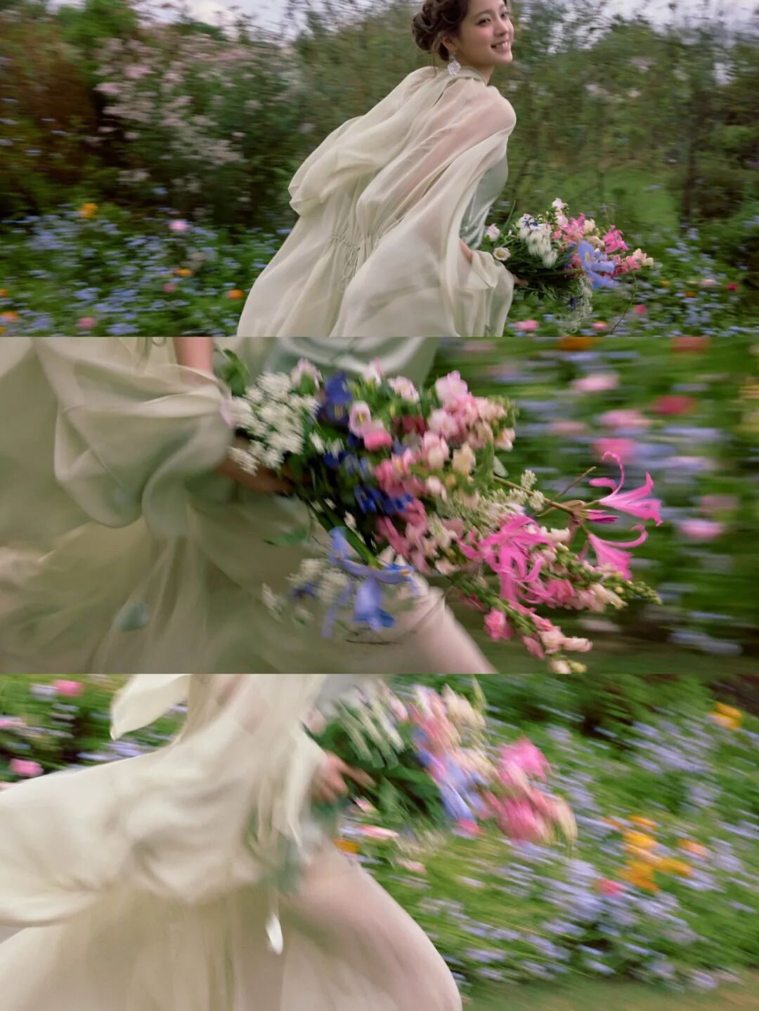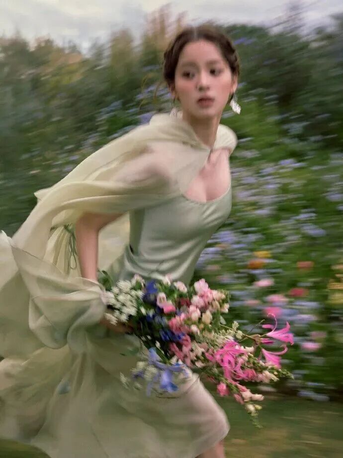 绿野仙踪的造型就来自她的点子,手持鲜花奔跑的画面灵感源自于电影《赎罪》中的经典场景。▼