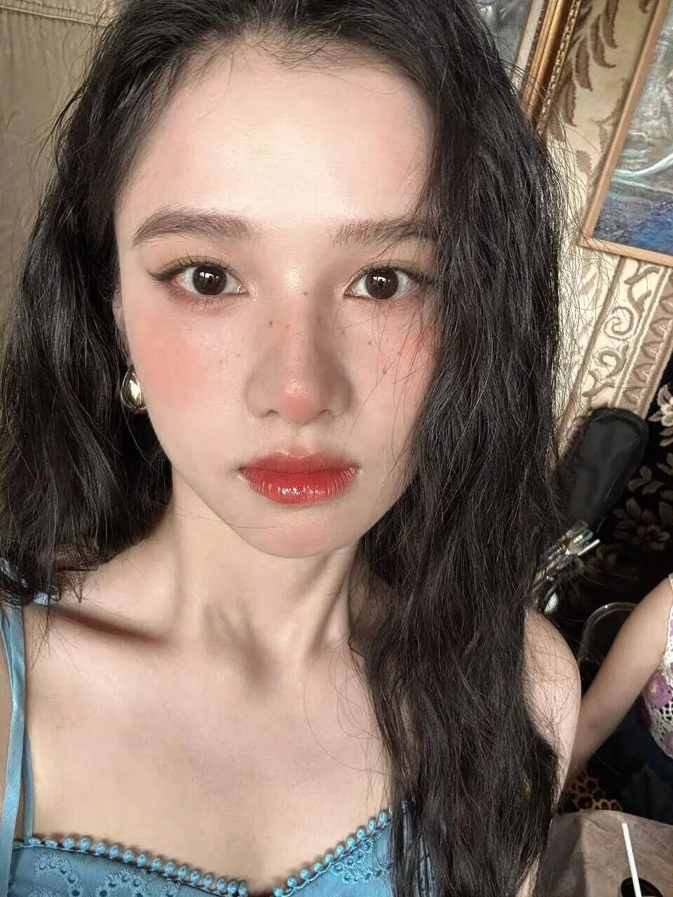 想尝试这个妆容的朋友,建议把底妆化得清透自然一点,可以稍微保留一些皮肤本身的质感。