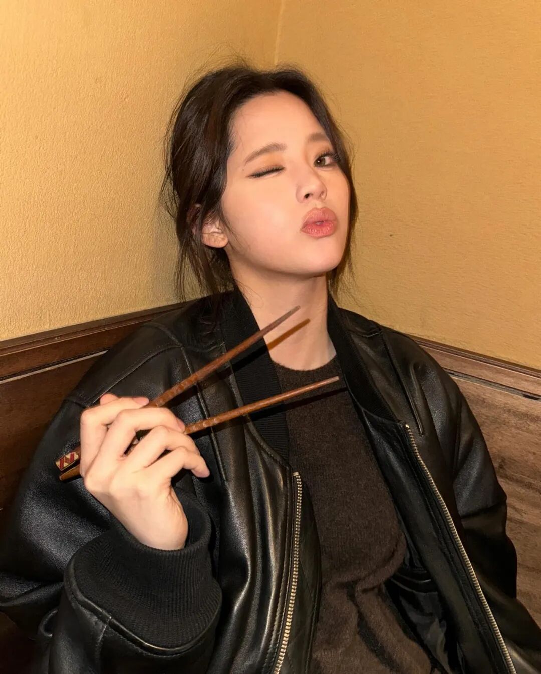 她会用酷感烟熏妆来搭配皮衣,调和妆容和气质之间的甜酷平衡。▼