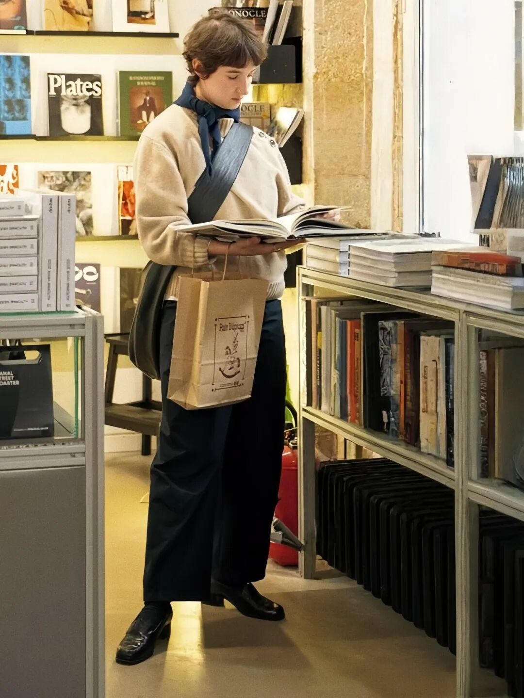 2.穿搭从模仿开始。找到你喜欢的风格榜样,从一个配饰、一种穿法或一套配色开始“抄作业”,从小面积开始尝试最能建立信心。