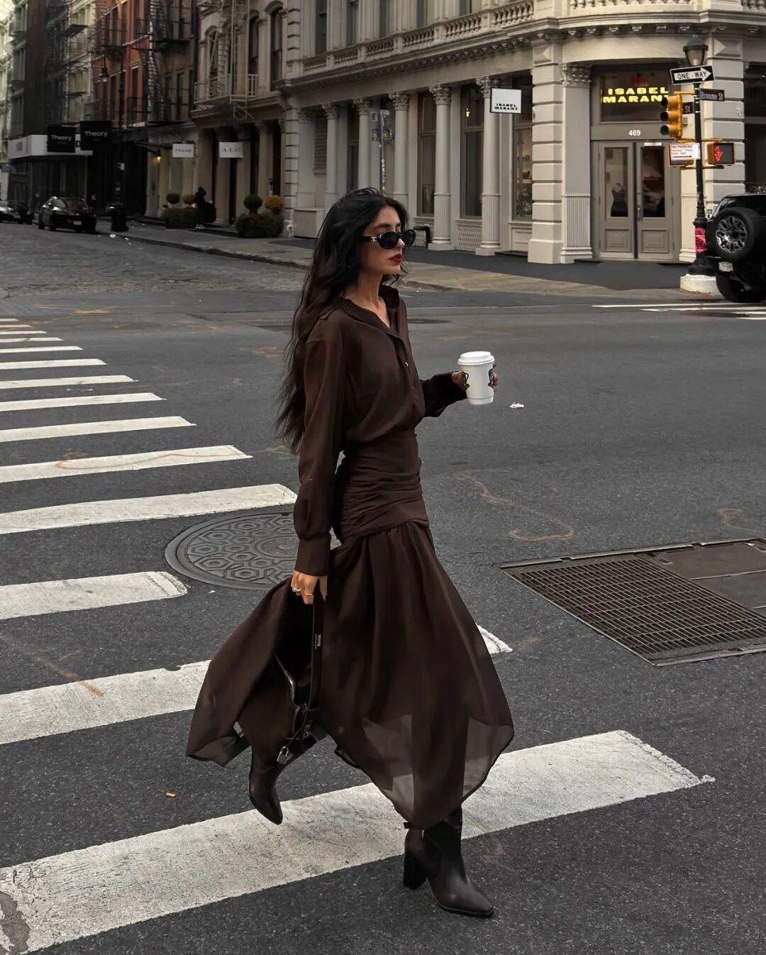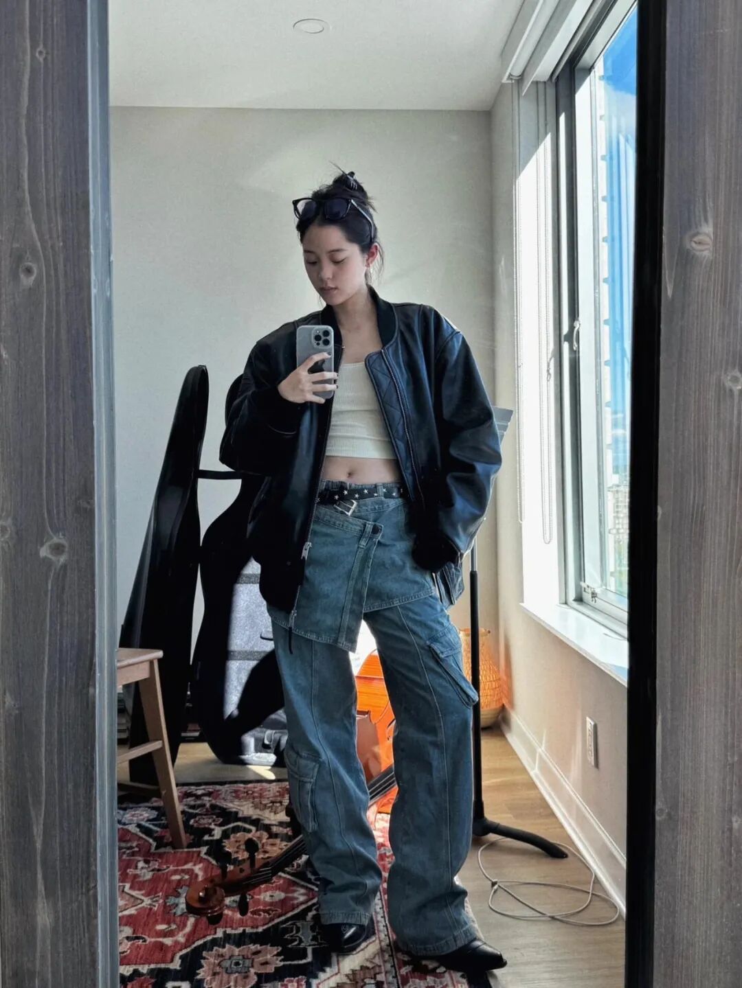 她的穿搭没有过多的大牌堆砌,反而更注重氛围的营造和风格的碰撞。
