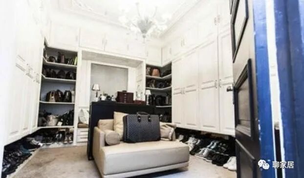 这是郭敬明的衣帽间,整体选择了白色设计,优雅自然充满了艺术气息。就连衣帽间的水晶吊灯看起来都是如此奢华唯美,把整个空间都显得更艺术了。地面还装饰了一条卡其色的地毯,价值好几万,太奢侈了。这里可全是奢侈品,而且打理的非常有格调呢!