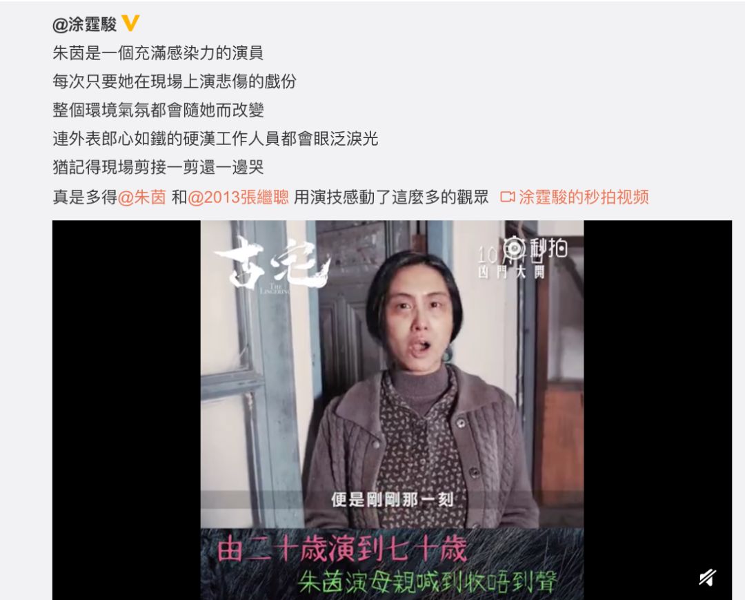 即使婚后曾暂别影视圈,朱茵复出后依然可以上综艺、演电影,不断拿出新的作品,就连《山村古宅》的导演都在微博上盛赞她的演技。