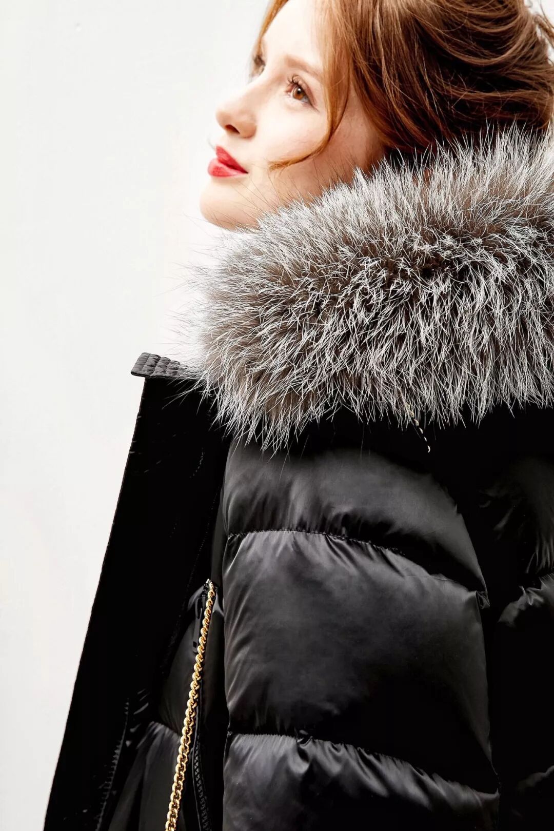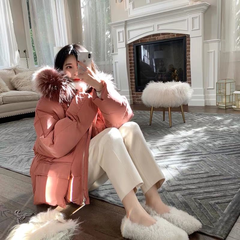 毛领是狐狸大毛领,超级好看,拍照感觉会很上镜。颜色有三个,黑白经典色+粉色。