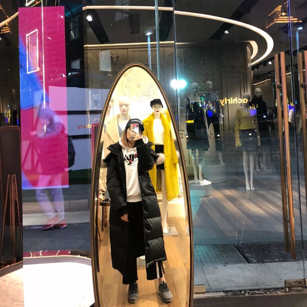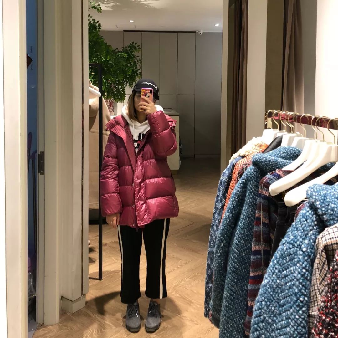 和上面的羽绒服不一样,这件上身穿起来不会很臃肿,你们看看镜子里面的嫂,是不是比上面的都要苗条一些~~