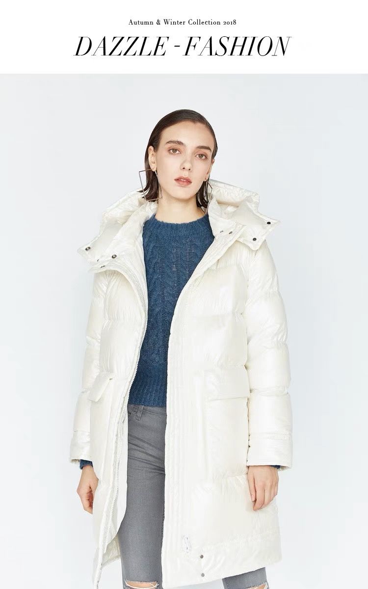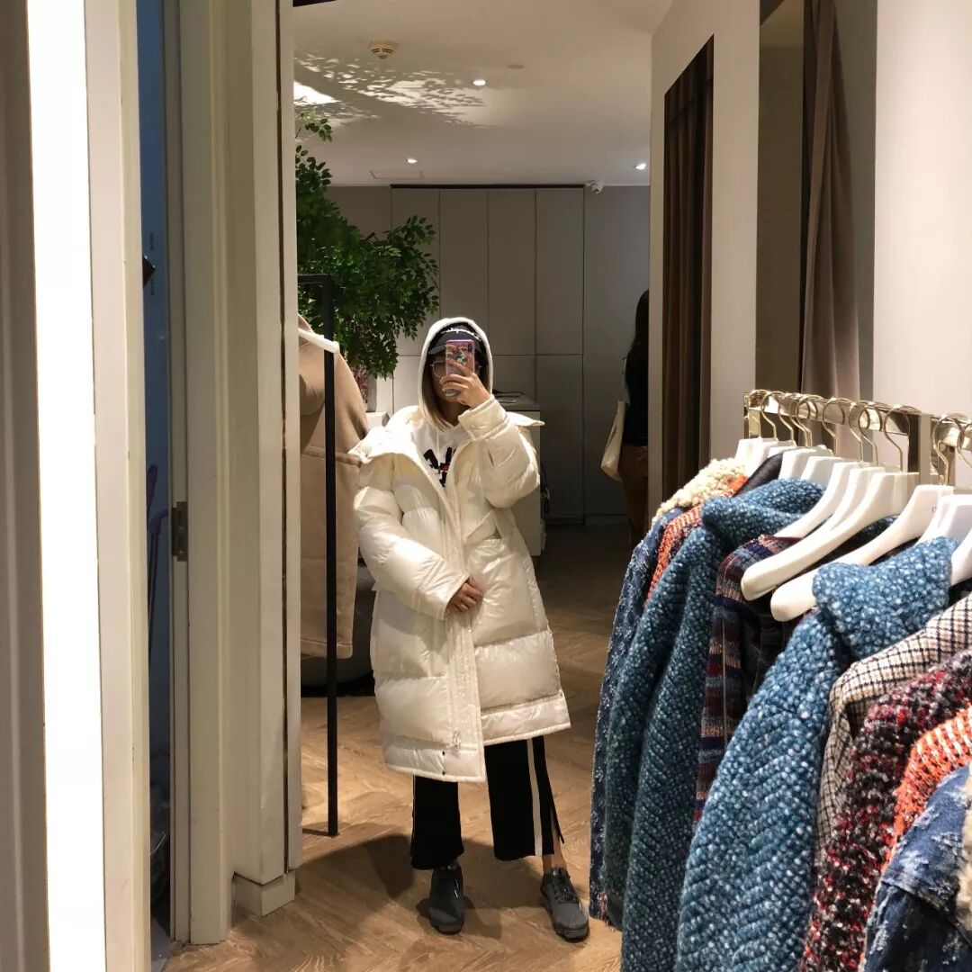 Dazzle的这件白羽绒服我很喜欢,90%白鸭绒,充绒量也是蛮高的,有200+g。现场试的时候,穿了一会儿就觉得热了。