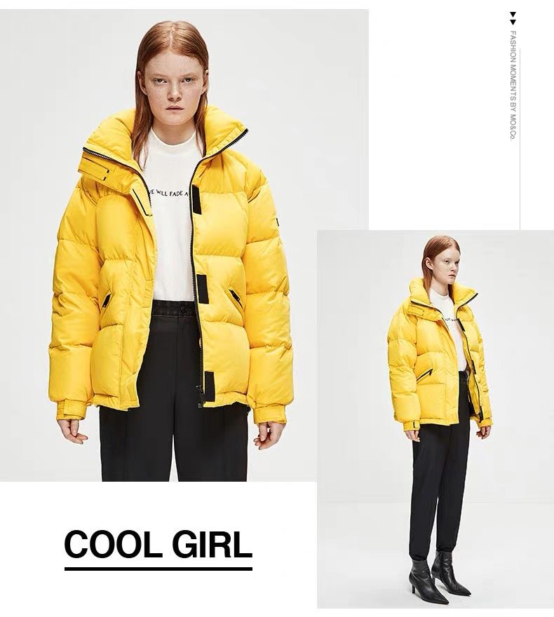 Moco这件是廓形感的羽绒服外套,鲜黄色比上面的姜黄色更醒目一些。