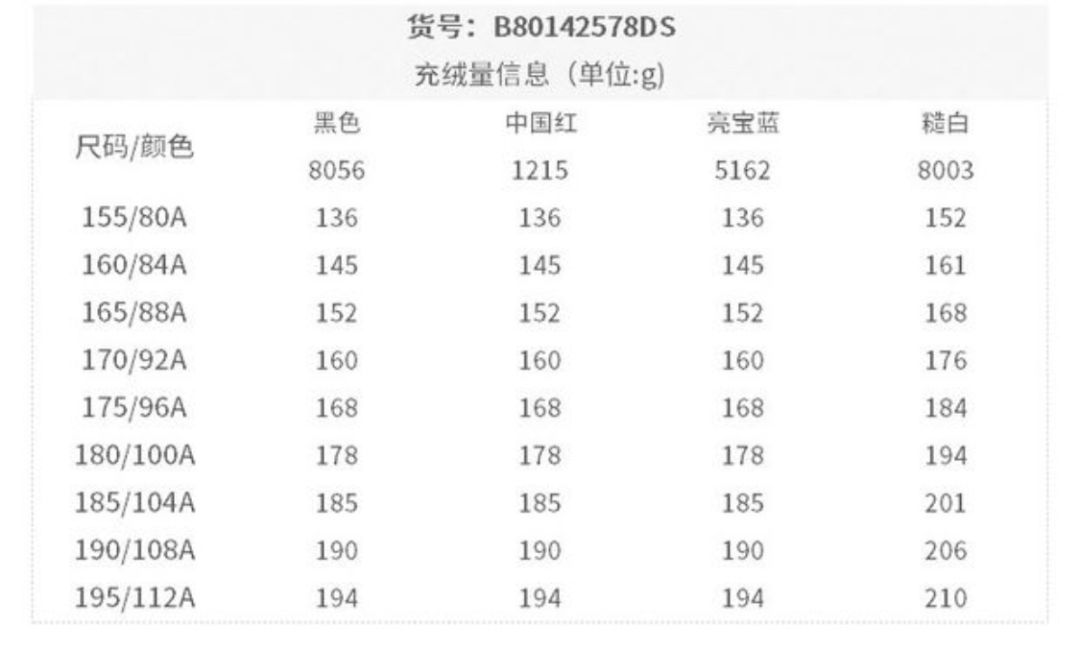 一般充绒量是和羽绒服的尺码挂钩的,尺码越大,当然充绒量就更高啦,这个很好理解的。