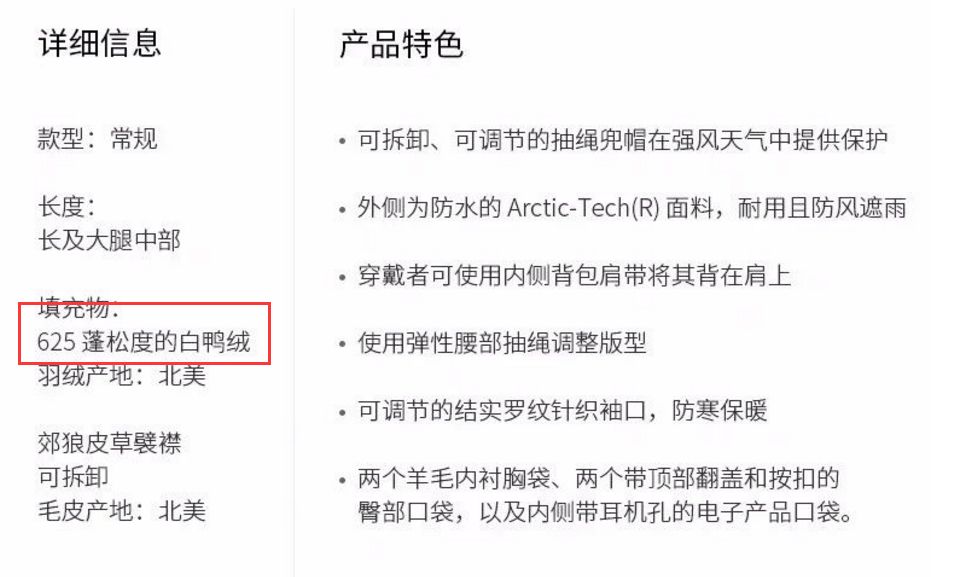 选择羽绒服,除了看材质之外,还需要看它的含绒量和充绒量。