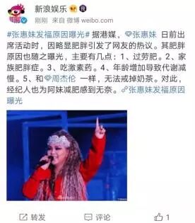 还有一个不仅霸占了我的童年,还霸占了父母的青春的歌手——阿妹,也被肥肉给禁锢住了。