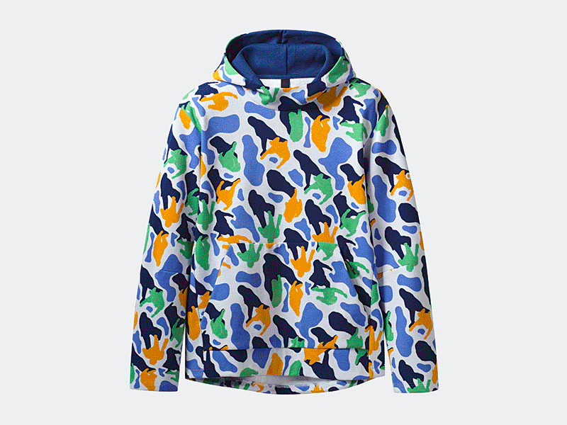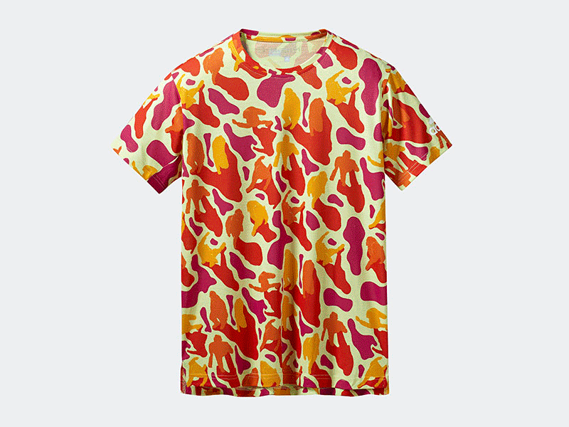 特别邀请的韩国设计师 Buzcha.J 打造的迷彩印花图案,由八种别具一格的鲜明色彩组合而成。