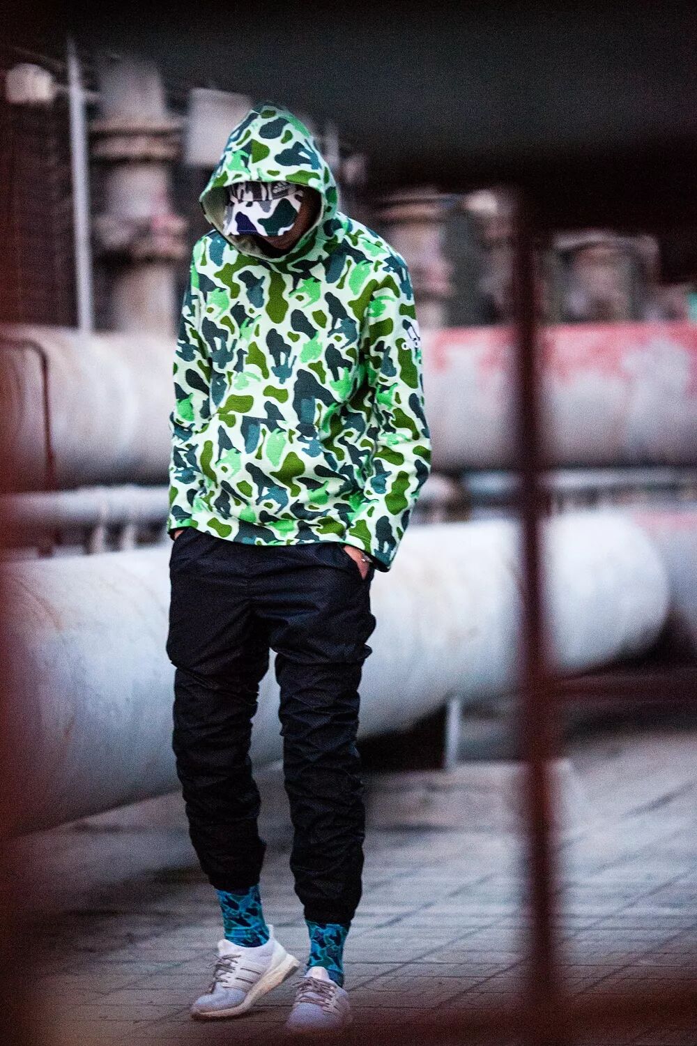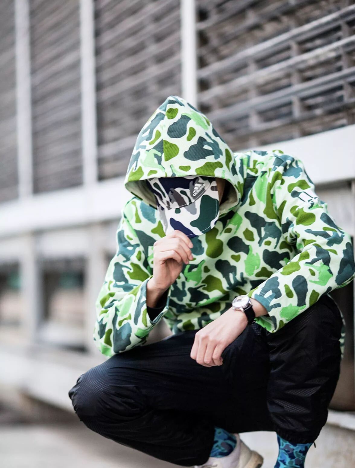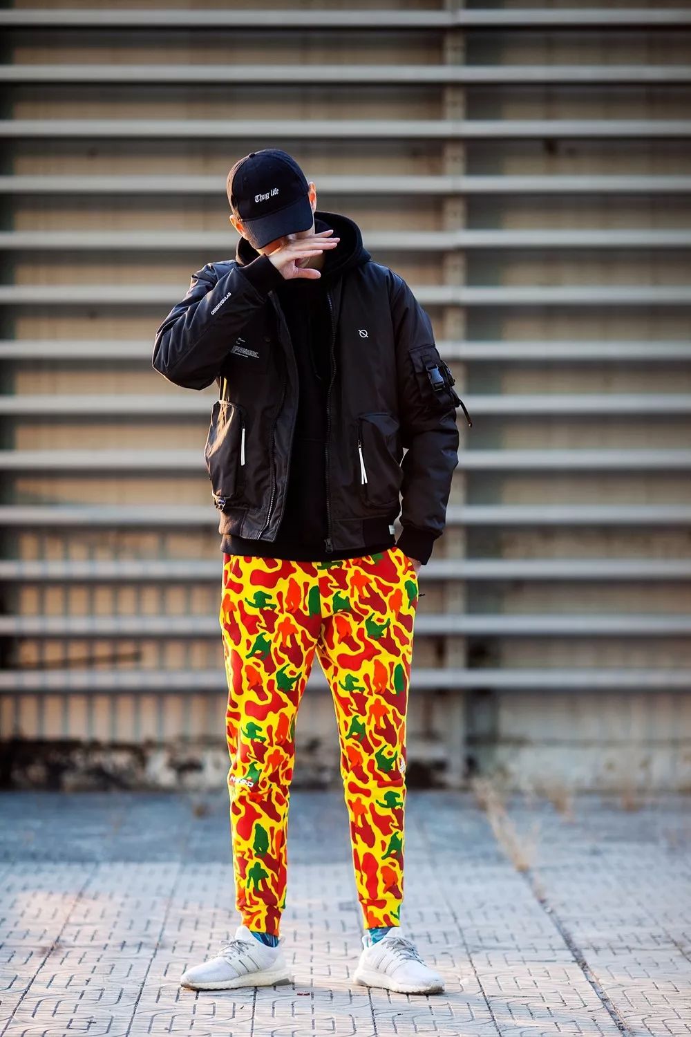 弯檐帽和袜款承袭了同样的迷彩纹理,作为单品出现在穿搭中,也是瞬间点亮整体的明星!