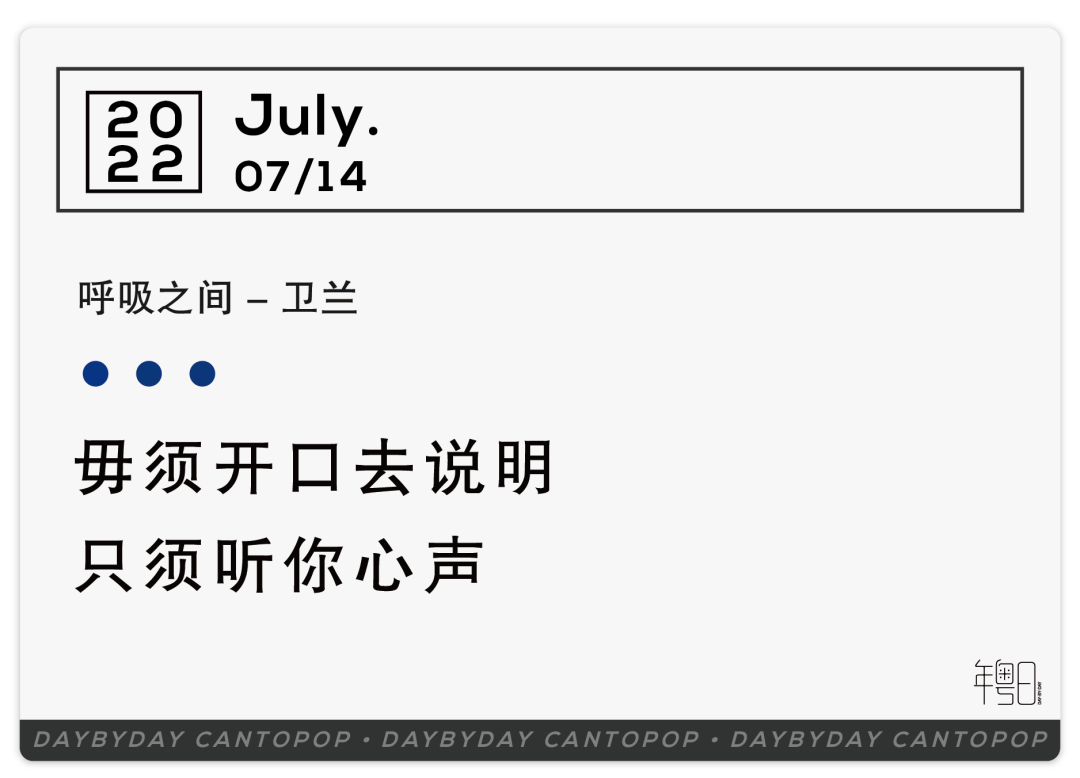 也许是这个时势需要这种声音,也许是卫兰真的发生了蜕变。随着一句「平静去将呼吸感觉 全部放慢」,脑海里的杂念就被瞬间遗忘, Janice就像一位知心姐姐坐在我们的身旁,温柔细心地问侯我们近况,试图「将不安冲淡」;当我们将人生苦楚一一道来时,她又会转换成过来人的角度感同身受,「停不低思绪 有时捱到太累 我知 / 无端给比较 偶然迷惘挫败 我知」。