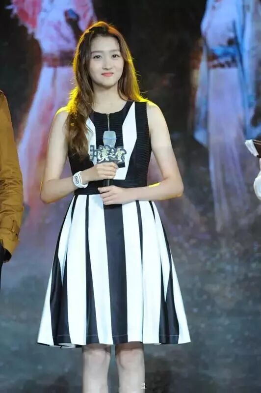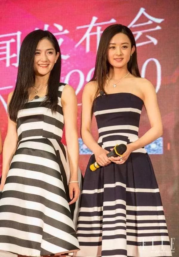 不料!赵丽颖穿的也是黑白条纹的裙子!