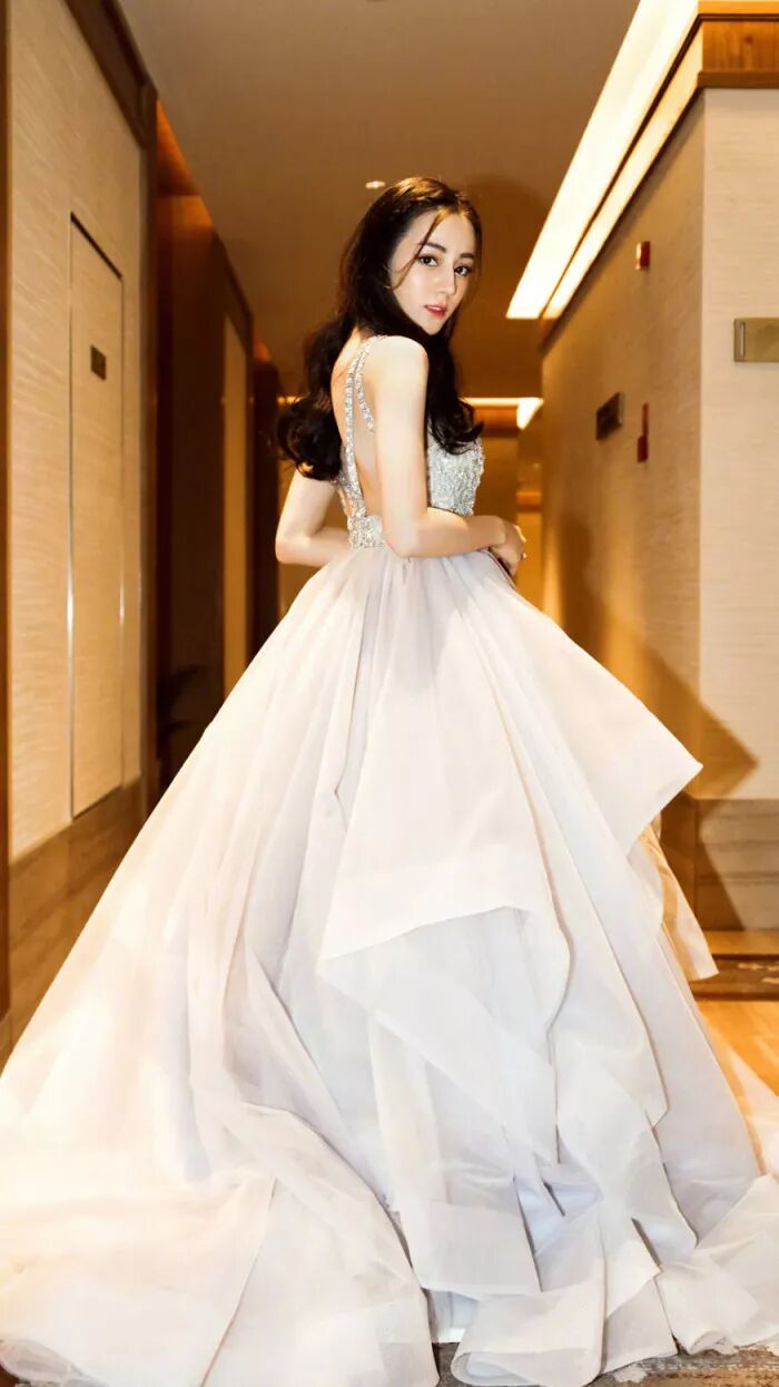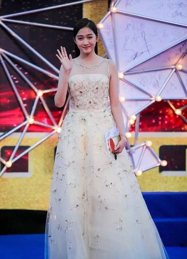 同样是肉色晚礼服长裙,关晓彤还是显胖,还有点显老了。