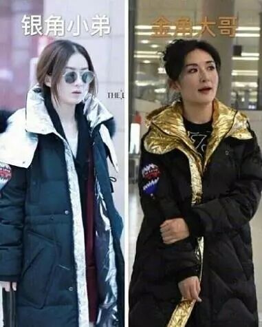 最开始两个人是撞了一件同品牌的羽绒服,只是颜色不一样,一件金色,一件银色,所以“金角银角”姐妹就这样莫名地来了。