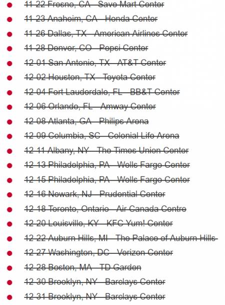 随后演唱会代理Live Nation发布消息,全面取消剩下的22 场演出。