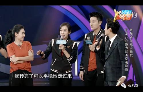 茜茜啊!刚才是谁说“我转完了可以平稳地走过来”?怪不得刚才边上的张柏芝脸上的表情分明是“你确定吗”!